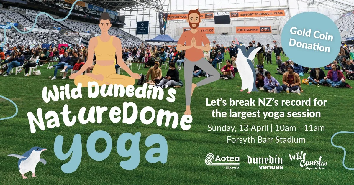 On a crisp Dunedin morning — the kind where the air is fresh with promise and your breath feels like a soft cloud — more than 600 beautiful humans gathered under the roof of Forsyth Barr Stadium. Yoga mats were unrolled like welcoming carpets. Shoes were tucked off to the side. And with a collective breath, we began.